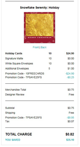 Total $0.75 (+ tax) shipped for 10 custom cards and the additional envelopes!