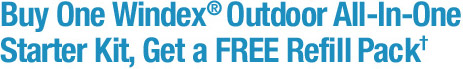 The new Windex® Outdoor All-In-One glass cleaning tool delivers a streak-free shine in half the time!‡ Simply spray your windows with water, wipe with the Windex™ cleaning pad and rinse. Best of all, there’s no need to hand-dry!