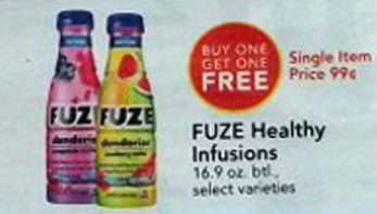 Starting 4/14 – 4/20 Jewel will have Fuze on sale for Buy One Get One FREE at $0.99. There is a $1/2 Fuze coupon in the (4/10 SmartSource Insert) making these FREE after coupon.