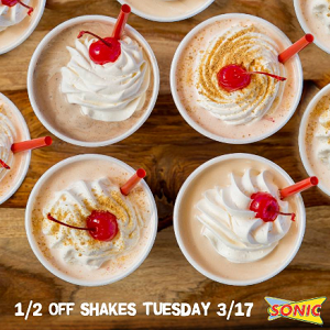 To celebrate the St. Patrick’s Day Sonic is offering 1/2 price Shakes all day today, 3/17! Happy St. Patrick’s Day! … [Read more...] about Half Price Shakes at Sonic All Day Long Today (3/17)