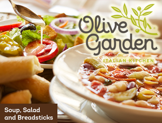 Olive Garden is offering $5 Unlimited Soup, Salad and Breadsticks Coupon – dine-in only. The coupon is only valid until 4PM each day through March 6th! Olive Garden is offering a FREE Appetizer or Dessert when you buy 2 Entrees Coupon! Offer valid until 3/17/15. … [Read more...] about Olive Garden: Unlimited Soup, Salad and Breadsticks for $5 Coupon