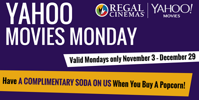 Regal Cinemas is offering FREE Soda when you buy Popcorn on Mondays only November 3 - December 29, 2014. … [Read more...] about FREE Soda wyb Popcorn on Mondays at Regal Cinemas