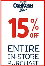 OshKosh B’gosh is offering a 15% off Entire In-Store Purchase Coupon! … [Read more...] about OshKosh B’gosh: 15% off Entire In-Store Purchase Coupon