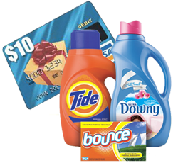 Get a FREE $10 Visa Gift Card Mail in Rebate with $30 Tide, Bounce or Downy Products Purchase between 9/1 and 9/28/13. BUY: $30 worth of Tide, Downy, or Bounce products (excludes Tide Pods and trial/travel-size products) between 9/1/13 and 9/28/13. You can get 6 Tide Detergent Coupons Here! … [Read more...] about FREE $10 Visa Gift Card Mail in Rebate w/ $30 Tide, Bounce or Downy Products