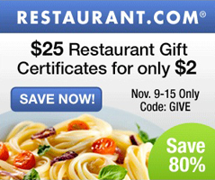Now save 80% Off Restaurant.com $25 Gift Cert. Get a $25 Restaurant.com Gift Certificates for $2.00 Use code: GIVE *Expires 11/15/10 … [Read more...] about $25 Restaurant.com Gift Certificates for $2.00 (Exp. 11/15)